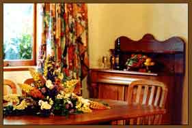 | Our country style cedarwood house has native heart Rimu throughout and quality furnishings. Relax in our comfortable lounge or conservatories and enjoy music, chess, reading or playing the piano. Great coffee and fresh homebaking are always there for you. The honeymoon suite with double Spa/Shower, outdoor garden entrance, fresh flowers and luxurious sheep skin rugs give you that special feeling of being pampered.