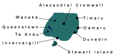 Glenmac Farm Stay. Oamaru. $35-$55 per person B&B. ref: 436 A 1583 Hectare high country merino sheep and cattle farm nestled in a quiet valley 60 Kms inland from Oamaru and 13 kms from the small country town of Kurow. Lake Wanaka Homestay. Wanaka. Double $90. Ref no: 542. Welcome to Wanaka. Relax with us in our modern home and enjoy our tranquil breathtaking views of Lake Wanaka and surrounding mountains. Lake Roxburgh Lodge. 9kms North of Roxburgh, Central Otago. From $90.00 double B&B. Ref no: 570. Luxury en-suite comfortable rooms, with fully licensed restaurant, set in 3 acres of landscaped grounds in the heart of Central Otago. Harpers Homestay. Wanaka. $95 double B&B. ref no: 95. Visit Wanaka, a lake and mountain resort nestled on the shores of Lake Wanaka and experience the warmth and hospitality of local "Kiwi" hosts who can give you an insight into local life and activities. Carrickview cottage. Bannockburn. Central Otago. $95 double B&B. Ref no: 444. Sseparate well appointed cottage located in an orchard in the Bannockburn area - the newest grape-growing area in Central Otago. Little Paradise Lodge.Mount Creighton. Queenstown area. $100 to $120. Ref no: 568. Situated on a peaceful lakeshore 25 minutes scenic drive from Queenstown towards Glenorchy. This magical place is surrounded by a big park like Garden,swimming pool and barbecue areas.The ideal stay for those who love nature. Renmore House. Wanaka. $125 - $180. ref no:238. Renmore House is an exclusive Bed and Breakfast Accommodation right in the heart of Wanaka. Tudor Park Country Stay and Garden. Invercargill. $130-150 double B&B. Ref no: 572. Tudor Park is a very comfortable well appointed homestay accommodation set in 4 acres of prize-winning garden just north of Invercargill just off SH6 and close to the southern Scenic Route. Chalet Queenstown. Bed and Breakfast Hotel. $145 - 210. ref no 1d. Swiss chalet style style hotel. Situated in a very sunny and quiet location only 400 metres from the town. Parklands Lodge. Wanaka. $165- $210 per room. Ref no: 750. With interrupted mountain views Parklands is nestled on 10 acres, 6 km south of Lake Wanaka alpine resort in the South Island of New Zealand. Trelawn Place, Queenstown, $180 - $250. Ref no: 668. Affordable luxury B&B in tranquil garden setting, unique riverside location, 5 ensuite rooms, and a self/contained cottage. Balmoral lodge Queenstown. Bed & Breakfast $185 - 295. ref: 24. 24 York st, Queenstown. Situated on Queenstown Hill, overlooking the township, each room provides spectacular views of the lake, township and surrounding mountains. Historic Stone House Inn. Queenstown $220 double. ref: 47 Rate includes breakfast, evening drinks and GST. Quality accommodation with distinctive character in the heart of New Zealand's adventure playground. |